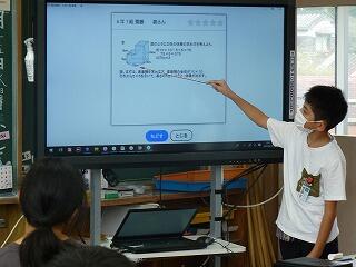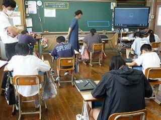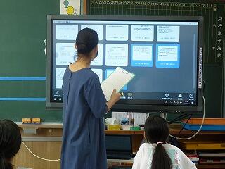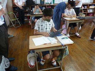 担任はタブレットの機能を使いこなせるようになっており、児童も操作に戸惑うことなく、スムーズに活動を進めていました。