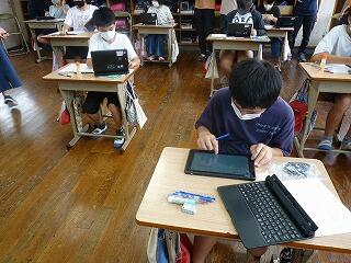 上級生には、1学期にタブレットが配付されたので、1学期からタブレットを授業に取り入れています。