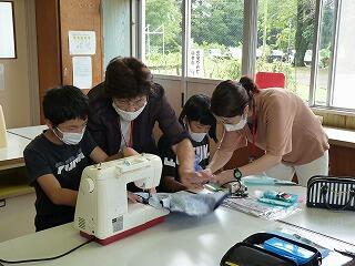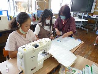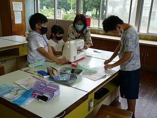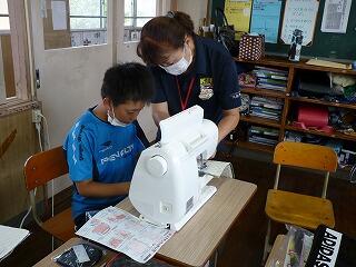 ミシンを使った学習が久しぶりなので、「Team Kawaminami学びのネットワークづくり事業活動支援」に依頼し、支援ボランティアの方々にご来校いただきました。
