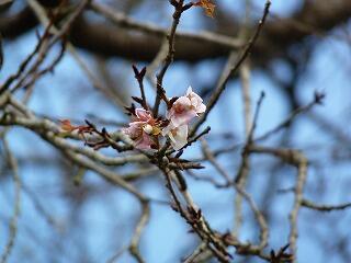 先日の強風で葉っぱが落ち、その後に気温が上がったので、桜が季節を春と勘違いしたのでしょうか。