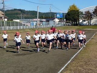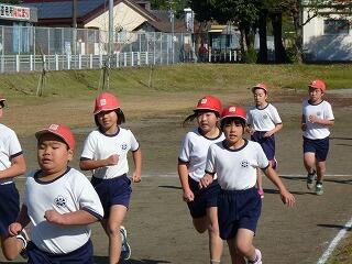 1・2年生は800メートル、3・4年生は1000メートル、5・6年生は1400メートルを走りました。