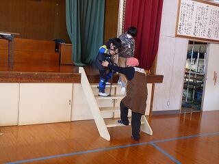 体育館では、桂さんから不審者にあった時の対応の仕方について話をしていただきました。「いかのおすし」で対応すること、ランドセルをつかまれた時にはランドセルを外して逃げること、逃げるときには20秒間または5~6秒間全力で走って逃げることやジクザグに走ることなどが有効であることなどを学びました。