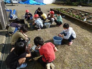 初めて靴洗いをする子もいましたが、みんな靴ブラシやたわしを使って上手に靴を洗いました。