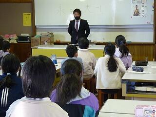 12月23日(木)、川南町出身のプロボクシング第42代日本スーパーライト級チャンピオンの永田 大士さんが来校され、5・6年生に講話をしてくださいました。