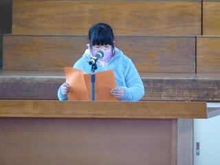 次に、5年生の井上 美空さんと黒木 大輔さんが3学期に頑張りたいことを発表しました。