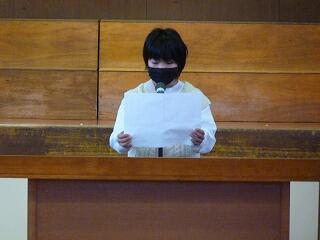 そして、黒木 咲来さんの伴奏で校歌を静聴しました。