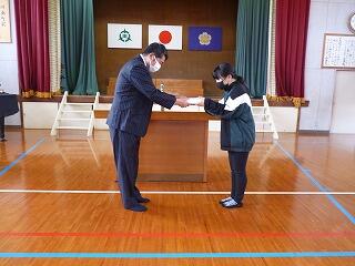終業式の後には、生徒指導主事から事故、事件に遭わないように気を付けることや凧揚げは電線の無いところですることなどについて話がありました。