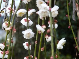 今朝、体育館に行く途中、しだれ梅の花が咲いているのに気づきました。そして、鶯の鳴き声も聞こえていました。