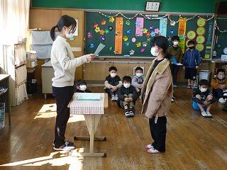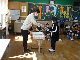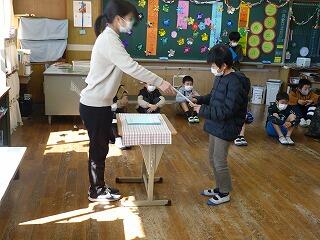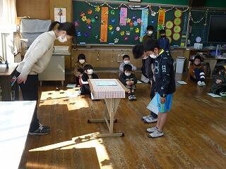 全員で1/2成人式への思いを語った後、1/2成人式証書の授与を受けました。教室で行った1/2成人式でしたが、卒業式と同じ動きで授与を受けたので、子どもたちは緊張したようです。