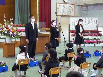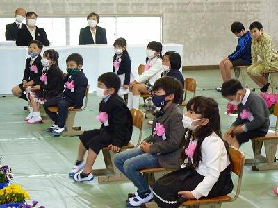 今年は12名の児童が大きなランドセルを背負って入学しました。入学式では、名前を呼ばれるとみんなしっかりと返事ができました。