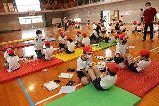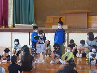 1年生にとっては、初めての全校集会でしたが、しっかりと話が聞けていました。他の学年の児童も立派な姿勢で話を聞くことができていました。