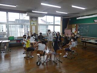 プロジェクト委員会計画の歓迎集会では、「1年生の紹介」と「山本小〇×クイズ」を行いました。1年生の紹介では、大きな声で自分の名前と好きなものを紹介しました。山本小〇×クイズは山本小のことがよく分かる内容になっていました。どの子もクイズに正解するとうれしそうに飛び跳ねていました。