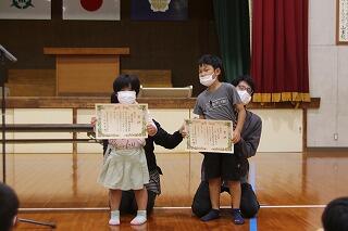 そのあと、県文集「ともだち」で優秀賞に選ばれた、2年生黒木むかいさん、1年生福岡ゆめかさんの