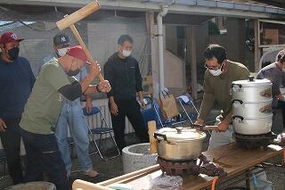収穫したもち米を使って、PTA役員の方々による餅つきも行われました。