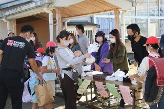 ついたお餅は児童全員に配られました。もらった児童はとてもうれしそうな顔をしていました。