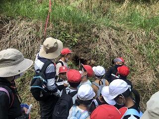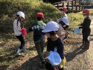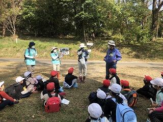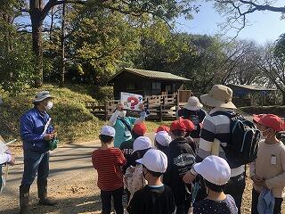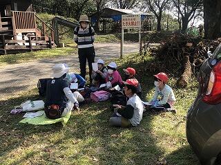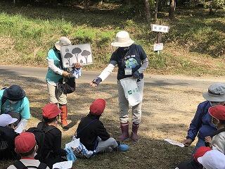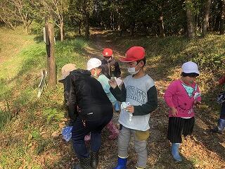 11月10日(木)の2、3,4校時に1・2年生が「森林散策を通して、身の回りの自然にふれあう喜びを味わわせ、大切にしていこうという心を育てる。」の目的のもと「遊学の森」で自然と親しみました。その中で、森の働きについても学習しました。