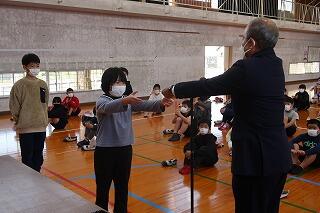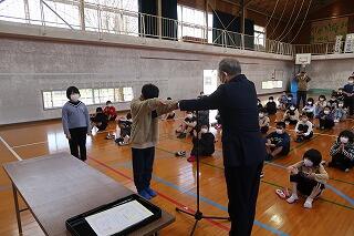 宮崎県ではたくさんの野球やサッカーのチームがキャンプを行い、4月から10月くらいまで行われる試合に向けての準備をしていると話がありました。それを児童のみなさんに置き換えると、2月、3月は4月からの新しい1年に向けての準備の期間と話され、「分からないところをそのままにしないでほしい。分からないところがあったら、担任の先生に質問してください。分かるまで教えてくださいます。」と話がありました。