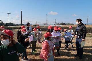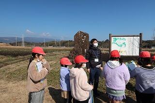 そのしめくくりとして、2月8日(水)に川南町の歴史や自然をバスで巡る学習に出かけました。今回は、町役場の学芸員である徳田さんに同行していただき、いろいろな説明を受けながらの校外学習でした。