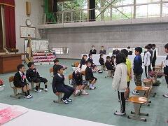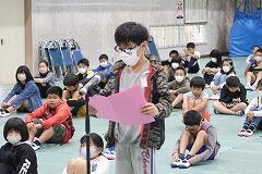 まず、今年度、山本小学校のメンバーに加わった5名の先生方の紹介がありました。3月末に、根井校長先生をはじめ、5名の先生方とのお別れをして、寂しい思いをした子どもたちの顔も自然にほころんでいました。その後、新任の先生方から一人一人あいさつがあり、新6年生の日野伸一さんが「先生方に早く顔と名前を覚えてもらって、たくさんのことを教えてもらったり、遊んだりしていきたいです。」と、歓迎の言葉を述べてくれました。これで、山本小の仲間入り完了!子どもたちと先生方、チーム山本小一丸となって頑張っていきます。
