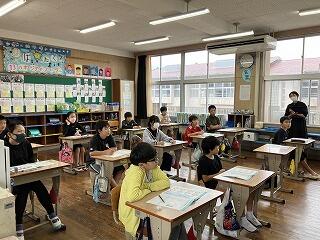 4年生は、総合的な学習の時間で「福祉」について学習しています。今回、その学習の一貫で、保育園のみんなと交流することになりました。目標は、自分たちの後輩でもある保育園生に楽しんでもらうこと。交流の内容を企画し、必要なものを準備したり、読み聞かせの練習をしたりして本番に臨みました。普段は、気軽に話したり、遊んだりしている園のみんなですが、改まった場で、前に立って話すとなると緊張するもの。それでも負けずに、4年生のみんなは頑張って自分の役割を果たしていました。おかげで、園のみんなは大喜び!楽しい時間になりました。4年生にとっても、人のために考えたり、準備したりするよい機会になり、この体験を通してまた一つ成長することができました。