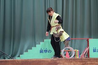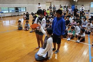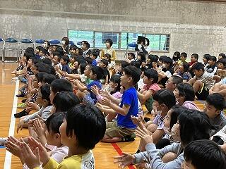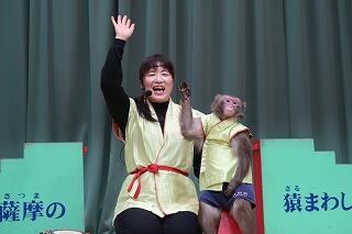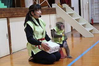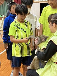 6月6日(火)山本地区ご出身の谷上様のお取り計らいで、鑑賞教室として「猿まわし公演」が開催されました。谷上様の「地元に何か貢献したい」という思いから、鹿児島の猿まわし芸人「広美さん」とおさるの「ななちゃん」を呼んで、子どもたちに見せてくださいました。本当にありがたいことです。感謝申し上げます。