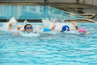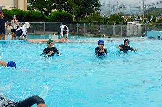 子どもたちは、それぞれの授業に大変意欲的に望んでいました。1,2年生は合同で、体育の水泳の授業でした。伏し浮きやけのびなど、水泳の基本的な動作を一つ一つ練習していました。まだまだ、顔を水につけるのが苦手な子もいるかもしれませんが、こういう積み重ねで泳げるようになっていくのですね。これからも頑張ってくださいね。