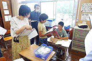 6月30日(金)1年生のみんなが、ICT支援員の方に指導していただいて、タブレットの基本操作を学習しました。最初は、慣れない手つきで操作していた子どもたちも、そこは若さゆえの飲み込みのよさで、すぐにすらすら操作できるようになりました。数分後、いろいろな模様や動物など、個性あふれる作品を仕上げていました。これから授業の中でも使うことになるタブレット。しっかりと使いこなして、学力アップにつなげてくださいね。