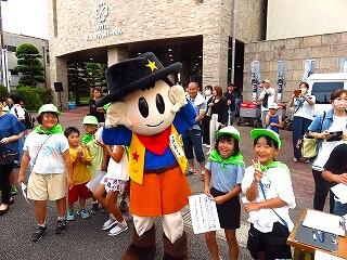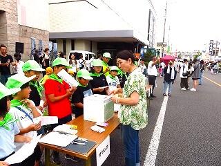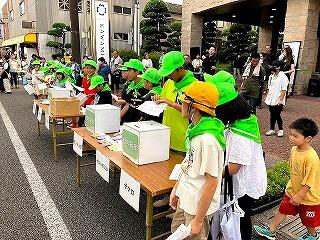 7月28日(金)トロントロン商店街で「夜市まつり」が開催され、その中で「みどりの少年団募金活動」を行いました。これは、宮崎県の森林の整備と緑化推進を目的に行われる「緑の募金」活動の一環で行っているもので、山本小の4~6年生の団員と兄弟姉妹、保護者の方々、総勢約40名で行いました。子どもたちは、商店街を行き交う人たちに「募金をお願いしまーす!」と呼びかけ、募金をしてくださった方には、「ありがとうございました!」というお礼の言葉とともに花の種や、山茶花、山椒、イロハモミジ、シークヮーサー、ザクロなどの苗木を渡していました。子供たちの呼びかけに多くの方々が答えてくださり、とてもうれしく思いました。子どもたちにとっても、よい経験になったことでしょう。