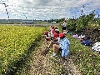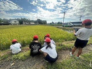 9月8日(金)5年生のみんなが、6月に植えた稲の観察に行きました。自分たちで植えた苗がどれくらい成長しているか、子供たちはワクワクしていました。今回も、JA青年部の方が稲のこと、そして田植えの後の維持、管理等について、いろいろと教えてくださいました。私たちが毎日食べるお米ができるまでの苦労について、たくさん学んできたようです。きっと、これからご飯の味が変わるかもしれませんね。稲刈りも頑張ってくれることでしょう。