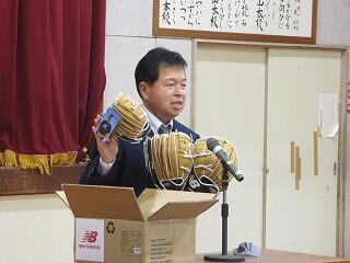 最後に、昨年末に届いた、メジャーリーガー大谷選手からのグローブが紹介されました。みんな大喜び、食い入るように見ていました。昼休みに貸し出しますので、「大谷グローブ」を使って、野球に親しんでください。