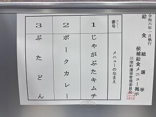 ちなみに、今回立候補したメニューは、「じゃが豚キムチ」「ポークカレー」「豚丼」の面々。だれが当選するのでしょうね? 当選メニューは、後日実際に給食で出していただけるそうです。楽しみですね。