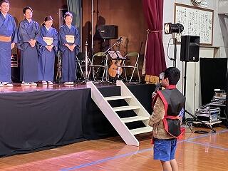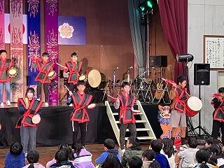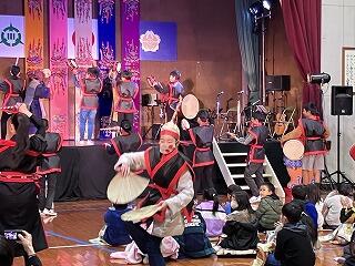 いざ、会場(体育館)に一歩足を踏み入れると、そこはもう沖縄一色。そこで触れる美(ちゅら)のみなさんの演奏や歌、踊りに魅了されました。子どもたちも初めて琉球音楽、琉球舞踏を体験して、圧倒されながらも真剣に聞き入っていました。途中、代表でステージに参加した6年生の踊り(エイサー)もとても上手で、たくさんほめていただきました。(詳しくは、下の写真をご覧ください)