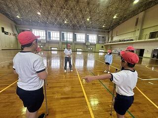 その次は、「キャッチ the スティック」。これは、チーム戦です。チームのなかまのことを思いやる心、チームワークが必要不可欠です。どのチームが勝ったかな?