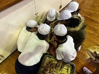 2月1日(木)夕食の様子です。たくさん活動したので、5時からの夕食だったにもかかわらず、みんなすごい食欲だったそうです。夜も活動があったので、夜お腹がすいたかもしれませんね。