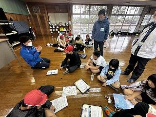 各活動の様子を紹介します。まず、今日の午前中の屋内追跡ハイキングです。