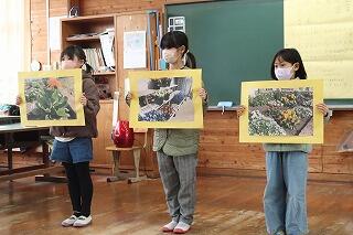 2月20日(火)1,2年生が、校外学習で学校近くの「遊学の森」に行きました。宮崎県緑化推進機構から4名のガイドの方々が来てくださり、ネイチャーゲームや森林散策を体験させてくださいました。森林散策では、普段あまり触れることのない植物や虫、動物の痕跡などをたくさん紹介してくださり、子どもたちは興味津々。中には、鹿の角を発見する子どももいました!最近暖かい日が続いたせいか、山の中は春の花々が咲き始めていました。目や耳、鼻などの五感、体全体で春を感じることができて、とても貴重な体験となりました。ガイドのみなさん、ありがとうございました。