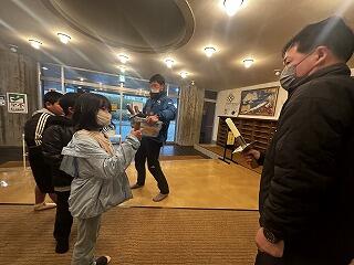 2月1日(木)夕食の様子です。たくさん活動したので、5時からの夕食だったにもかかわらず、みんなすごい食欲だったそうです。夜も活動があったので、夜お腹がすいたかもしれませんね。