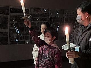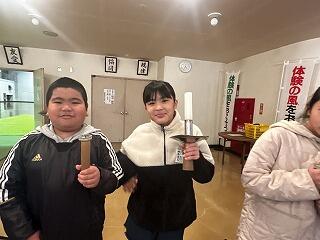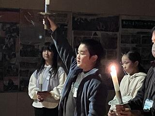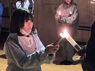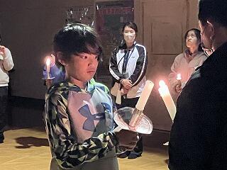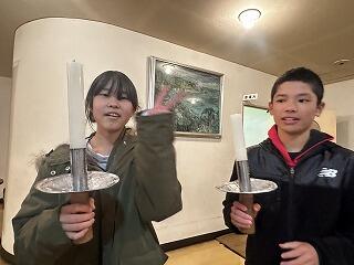 2月1日(木)今回の集団宿泊学習のメインプログラム「キャンドルファイヤー」がありました。暗い体育館の中にともるろうそくの火を前にして、一人一人目標を発表していきました。とても厳粛な雰囲気で、子どもたちも緊張していた様子でしたが、立派に発表していました。