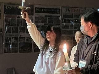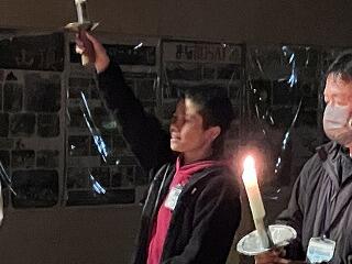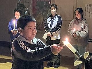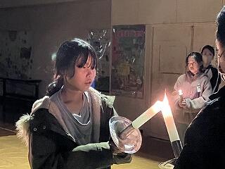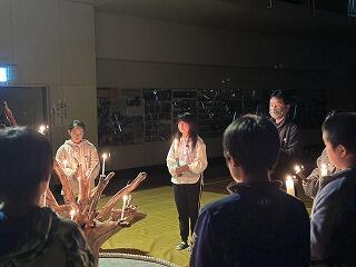 2月1日(木)夕食前に、夜のメインプログラム「キャンドルファイヤー」のリハーサルをしました。