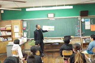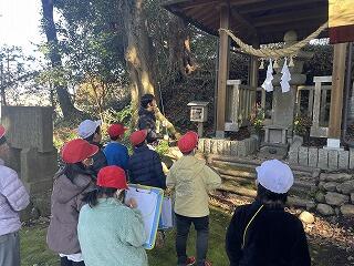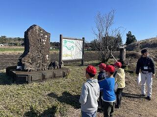 2月6日(火)3年生が校外学習に行きました。今、3年生は、総合的な学習の時間において「川南町のすてきを発信しよう」というテーマで学習を進めています。今回は、川南町役場教育課 徳田敬太様のご協力をいただき、川南町の史跡等の案内と説明をしていただきました。徳田様には、先日、昔の道具の使い方についても教えていただいたのですが、とても分かりやすく、子どもたちの興味・関心を引き出していただきました。地元「川南」のことが、ますます大好きになってくれたことと思います。