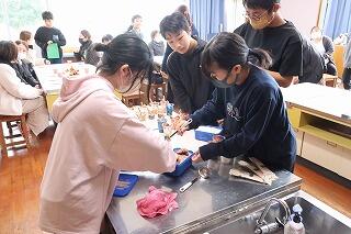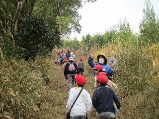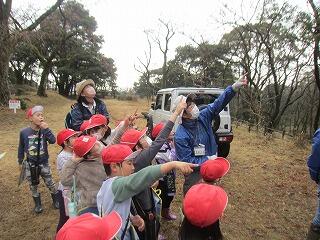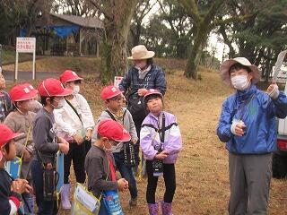 2月20日(火)1,2年生が、校外学習で学校近くの「遊学の森」に行きました。宮崎県緑化推進機構から4名のガイドの方々が来てくださり、ネイチャーゲームや森林散策を体験させてくださいました。森林散策では、普段あまり触れることのない植物や虫、動物の痕跡などをたくさん紹介してくださり、子どもたちは興味津々。中には、鹿の角を発見する子どももいました!最近暖かい日が続いたせいか、山の中は春の花々が咲き始めていました。目や耳、鼻などの五感、体全体で春を感じることができて、とても貴重な体験となりました。ガイドのみなさん、ありがとうございました。