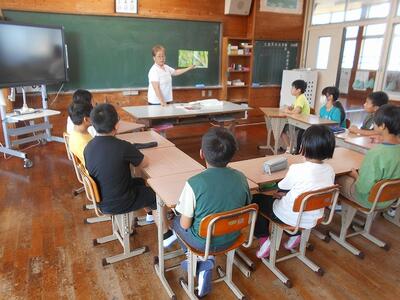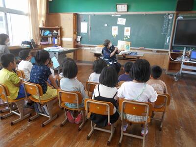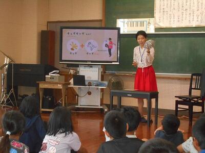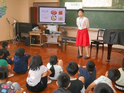 韓国出身の国際交流員の先生が、山本小学校に来校。