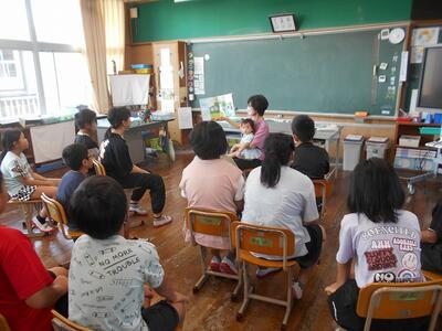 5年生教室では、大谷翔平物語の絵本の紹介でした。いつも、児童を引き付ける絵本探しをしていただいています。ありがとうございました。