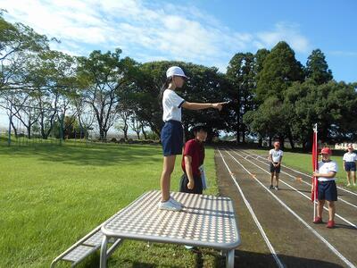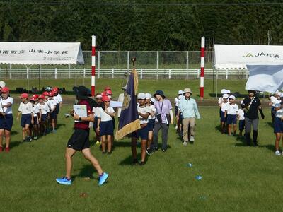 今回は、入場行進の練習と開会式のながれの確認を行いました。