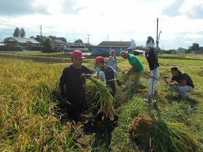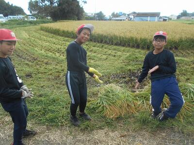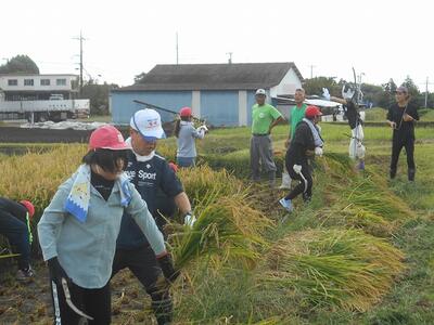 今日は、待ちに待った稲刈りです。鎌を使って、サクッサクッと切っていきます。