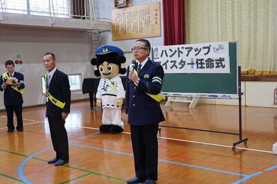 高鍋警察署の方が来校され、「ハンドアップマイスター任命式」が行われました。