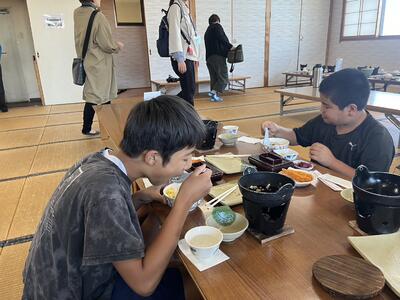 修学旅行はじめての昼食は、鹿児島名物の鶏飯。