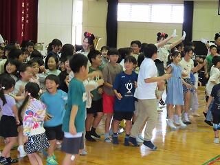 劇の後は、全校児童で「折り鶴」という歌を歌いました。