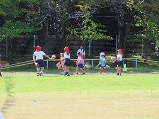 団技の途中で転んでしまったり、靴が脱げてしまったりした子どももいましたが、誰一人諦めず、最後まで自分の出番をやり抜いていました。脱げてしまった靴は、その次の出番の子どもが、競技をしながら拾い、後で手渡していました。その姿を見た時、心がとても温かくなりました。