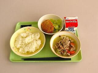 今日の献立 【ひむか地産地消の日】 ・ごはん ・牛乳 ・豚汁 ・まぐろフライ ・ゆでキャベツ ・1食ソース  配膳が終わったお盆の上を見た時に、今日はいつにもまして豪華だな…と思いました。給食一口メモを読み、今日が「ひむか地産地消の日」だということがわかり、思わず納得しました。  宮崎の大地や海の恵みがふんだんに使われている給食です。感謝しながら、ありがたい気持ちでいただきました。今日も美味しい給食が食べられて、幸せです。ごちそうさまでした。   【給食一口メモ】  今日は12 月の「ひむか地産地消の日」で、使用している宮崎県産の食材は、米、牛乳、豚肉、ごぼう、豆腐、まぐろフライです。  宮崎県は日向灘に面しており、いろいろな魚が獲れます。給食でも宮崎県産のちりめんやフカ、シイラなどが登場することもありますね。今日は宮崎県で獲れた鮮度のよいまぐろの赤身フライを出しました。しっかりとしたお肉のようなうま味があるので、お好みでソースをかけていただきましょう。